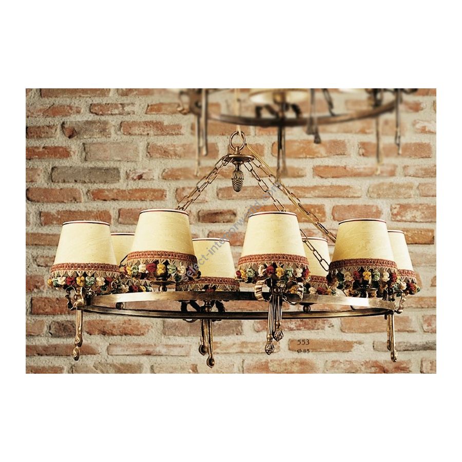 Round ""church"" chandelier with 8 lights with crowns. Lighting item that diffuses the light with great effect in the surrounding environment creating a warm and welcoming atmosphere.