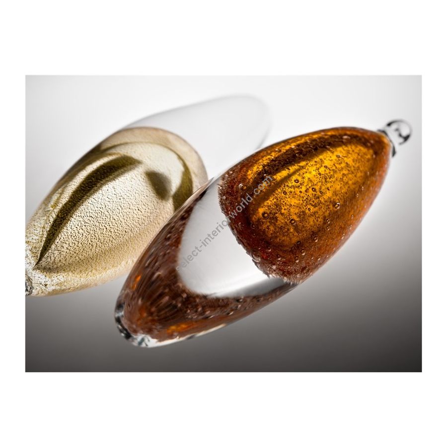 Murano glass pendants with the ""scattered glass"" technique are handcrafted objects made by the master glassmakers of Murano, a renowned island in the Venice lagoon famous for producing glass objects since the 14th century. The scattered glass technique involves applying intense flame to the still-incandescent glass to make it ""explode"" and create a rough and irregular surface that gives the pendant a unique and original appearance. The process requires great skill and patience, as the glass must be heated carefully to avoid breaking completely. The result is an organic-shaped pendant, with nuances of color and luminous reflections that change depending on the angle of light. Each piece is unique and has small differences compared to the others, as the handcrafted process makes each object different from the other. Murano glass pendants with the ""scattered glass"" technique are ideal for enriching a look with a touch of originality and elegance, and are appreciated by those who love craftsmanship refinement and innovative design.