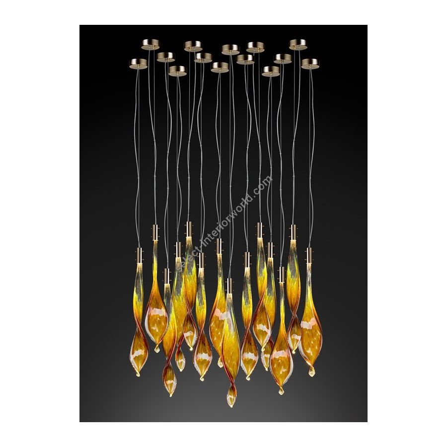 The Murano glass pendant lamp with leaf-shaped glass is a design object that captures the eye for its elegance and sophistication.