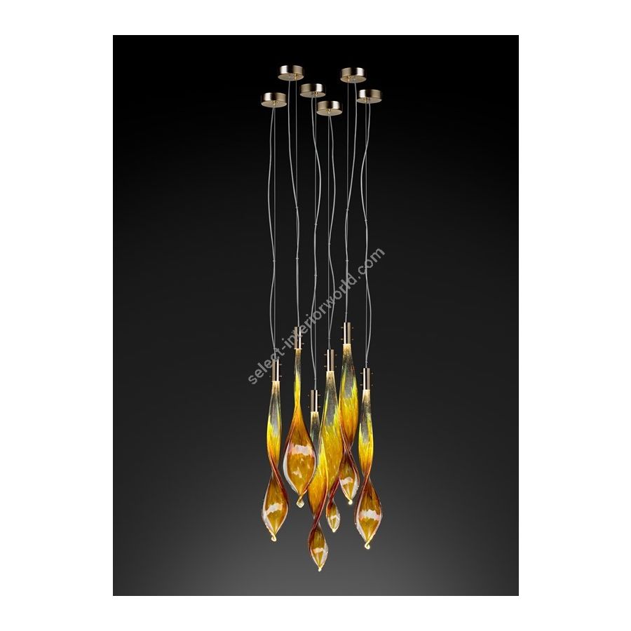 The Murano glass pendant lamp with leaf-shaped glass is a design object that captures the eye for its elegance and sophistication.
