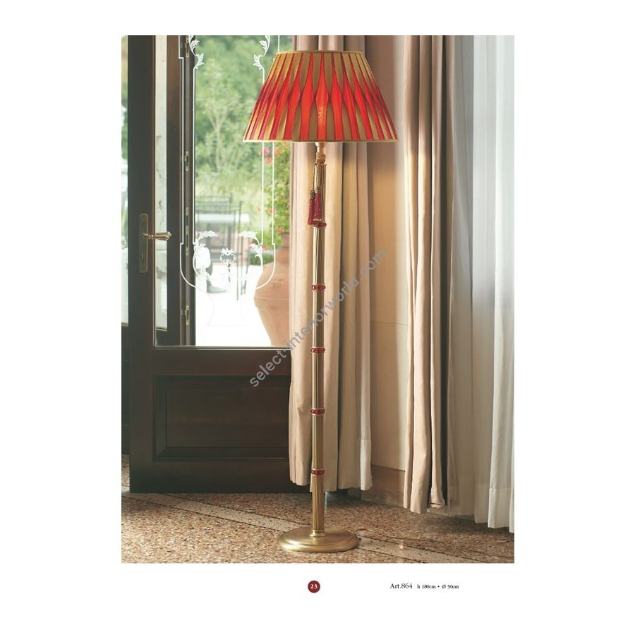 Floor Lamp with red glass inserts and farbic lampshade. Lighting item that diffuses the light with great effect in the surrounding environement creating a warm and welcoming atmosphere.