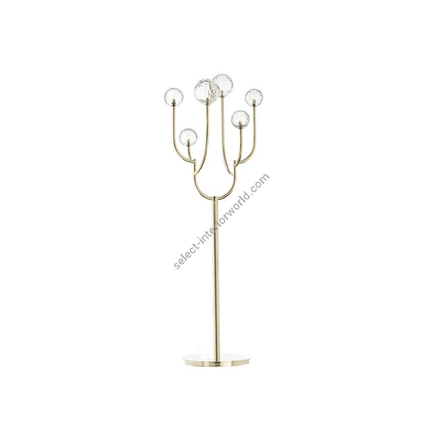 Floor Lamp in soft gold finish with hand-cut Italian crystal spheres. Lighting item that diffuses the light with great effect in the surrounding environement creating a warm and welcoming atmosphere.