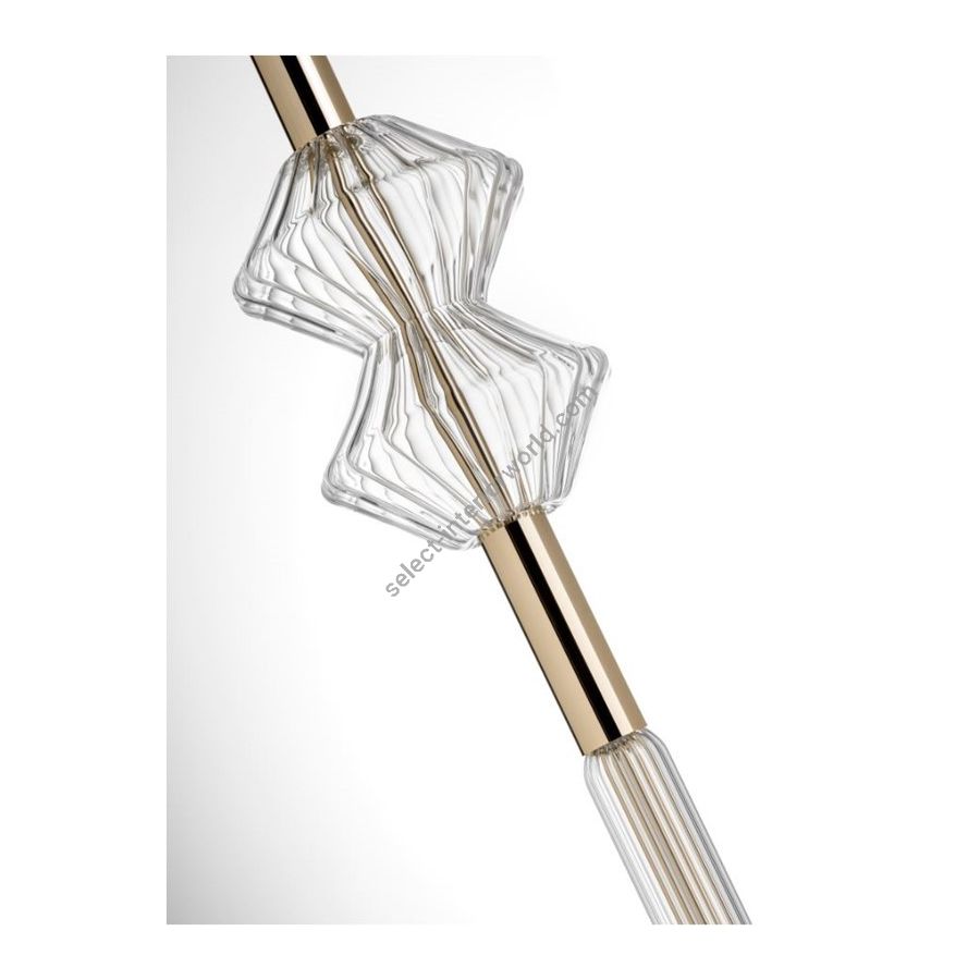 Pendant lamp in ribbed clear glass combined with metal details in pale gold SG finish. An elegant and refined design, ideal for creating cascading compositions and statement chandeliers. Perfect for contemporary and modern interiors looking for a timeless touch of elegance.
