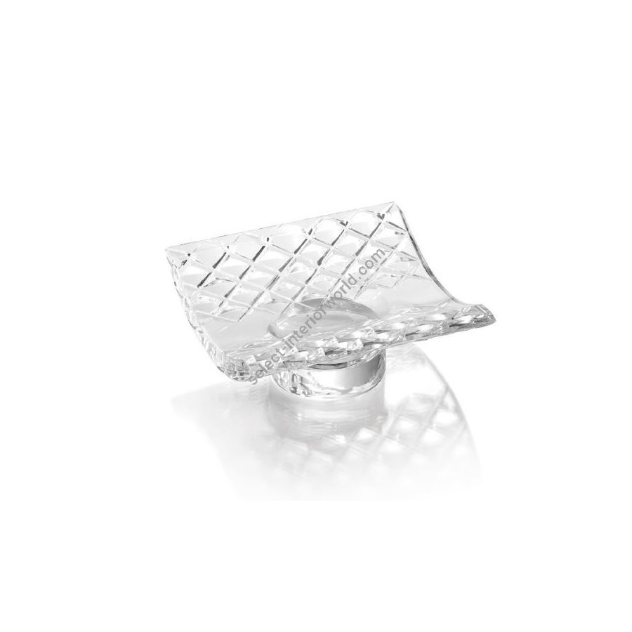 Italian hand-cut crystal set with three-dimensional rhombus pattern. Soap Dish. Functional elements that create an extremely elegant, welcoming and high-value bathroom.