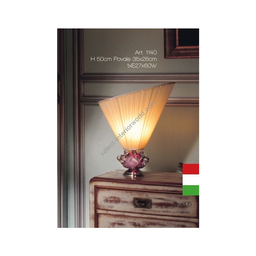 Table lamp with crystal rose and double fabric lampshade. Lighting item that diffuses the light with great effect in the surrounding environement creating a warm and welcoming atmosphere.