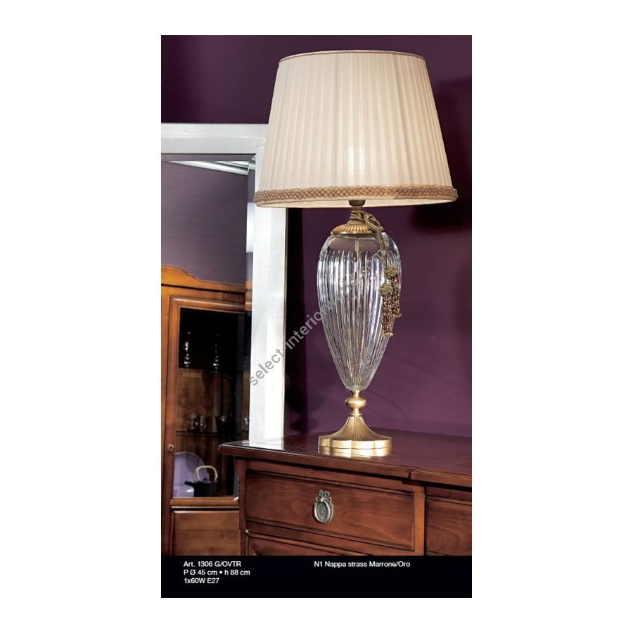 Crystal table lamp with transparent Crystal complete with lampshade (Tassel N1 brawn/gold not included in the price). Lighting item that diffuses the light with great effect in the surrounding environement creating a warm and welcoming atmosphere.