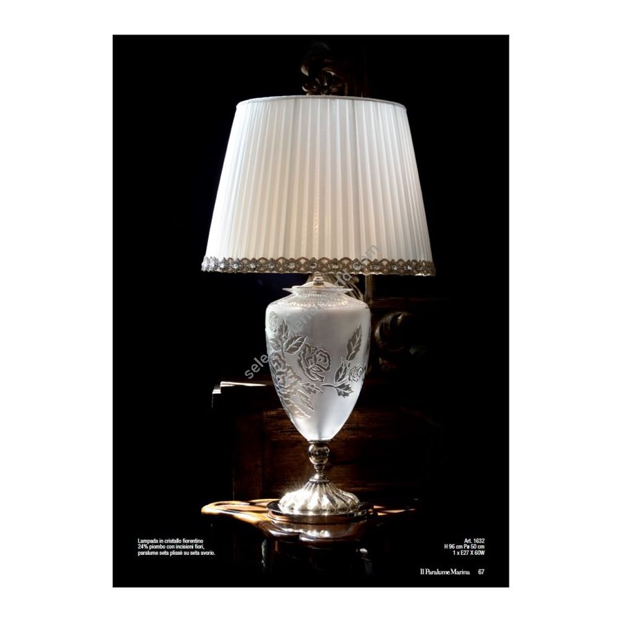 Crystal Table lamp, sandblasted crystal with carvedout flower platinum covered. Lighting item that diffuses the light with great effect in the surrounding environement creating a warm and welcoming atmosphere.