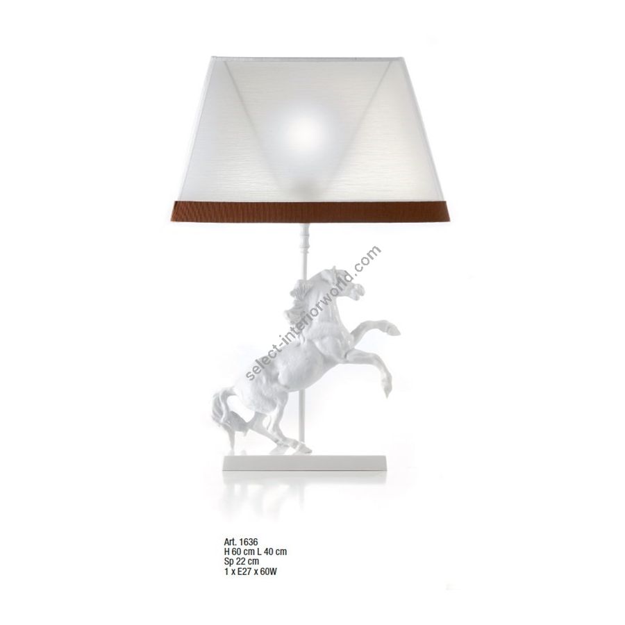 Lamp with white horse and rectangular lampshade. Lighting fixture that diffuses the light into the surrounding environment with great effect, creating a warm and welcoming atmosphere.