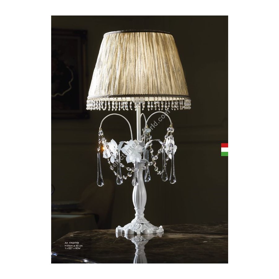 PEARL Collection: Table Lamp in white metal with White glass roses. Lighting item that diffuses the light with great effect in the surrounding environement creating a warm and welcoming atmosphere.