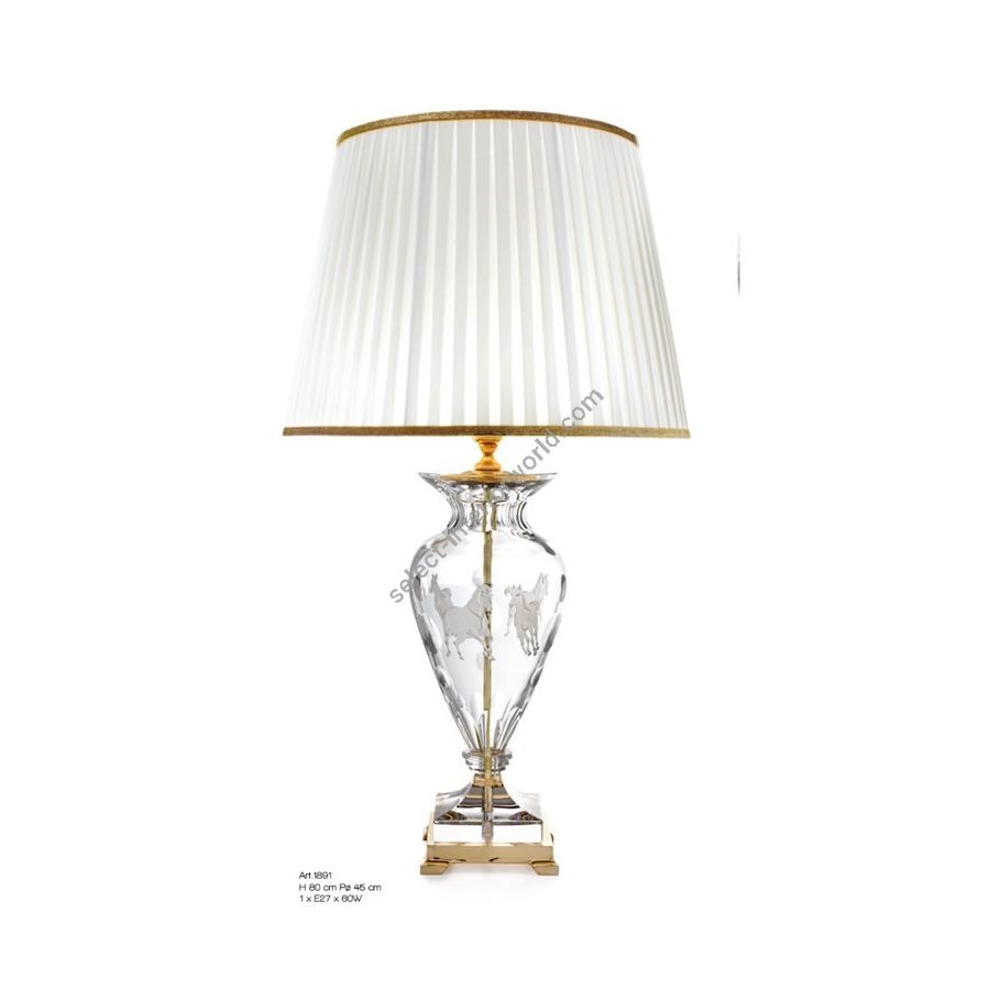 Table lamp in italian Crystal with Horse engraving. Lighting item that diffuses the light with great effect in the surrounding environement creating a warm and welcoming atmosphere.