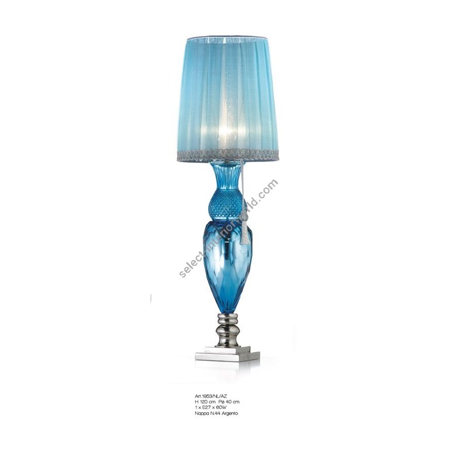 Table lamp in blue Florentine hand-cutted Crystal with mirror effect, pb 24% (tassel N44 argento is not included). Lighting item that diffuses the light with great effect in the surrounding environement creating a warm and welcoming atmosphere.