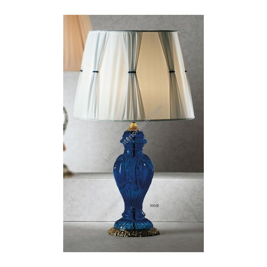 Table lamp with ""ginger blu"" Florentine crystal. Lighting item that diffuses the light with great effect in the surrounding environement creating a warm and welcoming atmosphere.