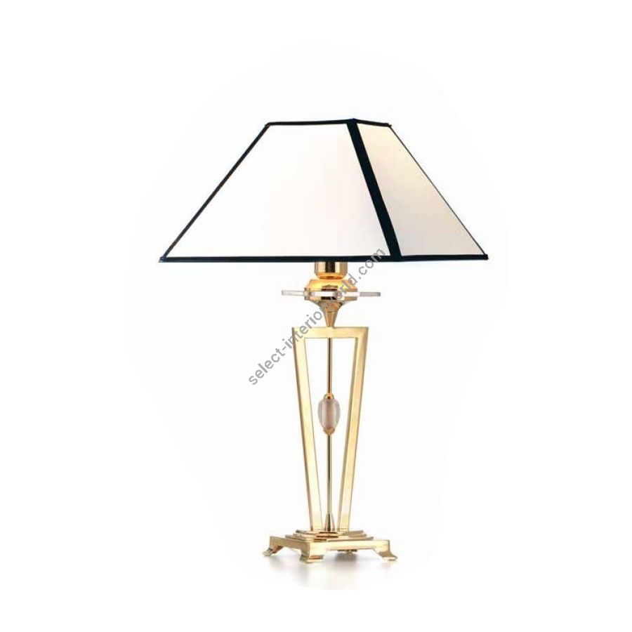 Table lamp trapeze with ivory lampshade. Lighting item that diffuses the light with great effect in the surrounding environement creating a warm and welcoming atmosphere.