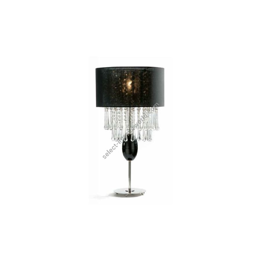 Table lamp with lampshade and Murano Glass drops. Lighting item that diffuses the light with great effect in the surrounding environement creating a warm and welcoming atmosphere.
