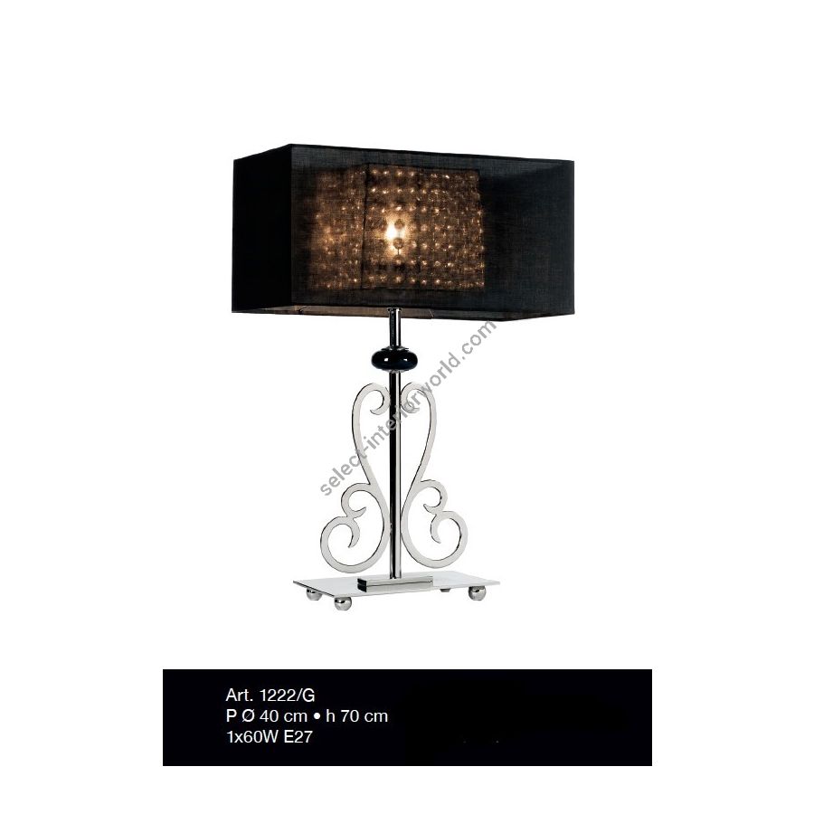 Table lamp with double rectangular lampshade. Lighting item that diffuses the light with great effect in the surrounding environement creating a warm and welcoming atmosphere.