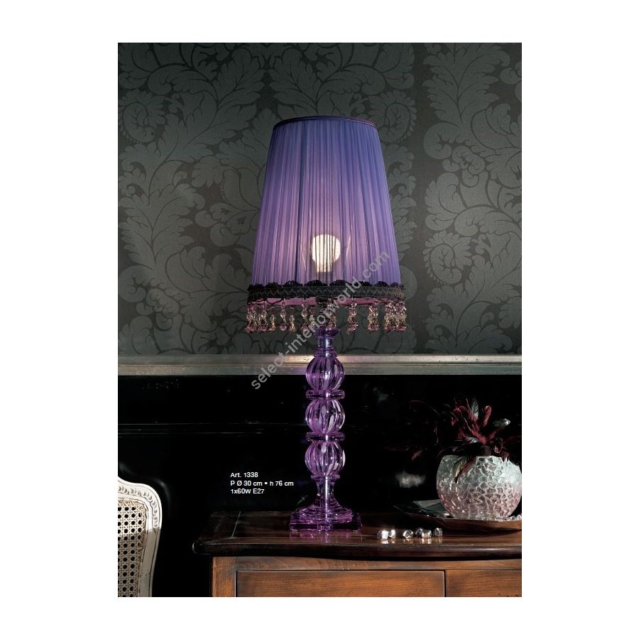 Table lamp in ametista crystal spheres and violet Lamphade. Lighting item that diffuses the light with great effect in the surrounding environement creating a warm and welcoming atmosphere.