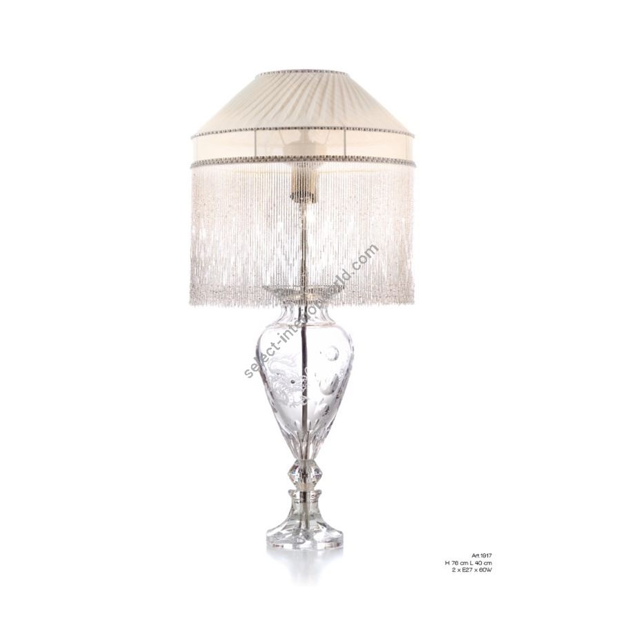 Table lamp in Italian Crystal with Dragon engraving. Lighting item that diffuses the light with great effect in the surrounding environement creating a warm and welcoming atmosphere.