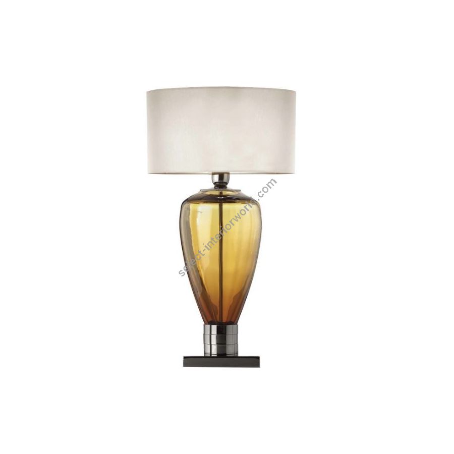 Table lamp in amber Florentine Crystal, plumb 24%. Lighting item that diffuses the light with great effect in the surrounding environement creating a warm and welcoming atmosphere.