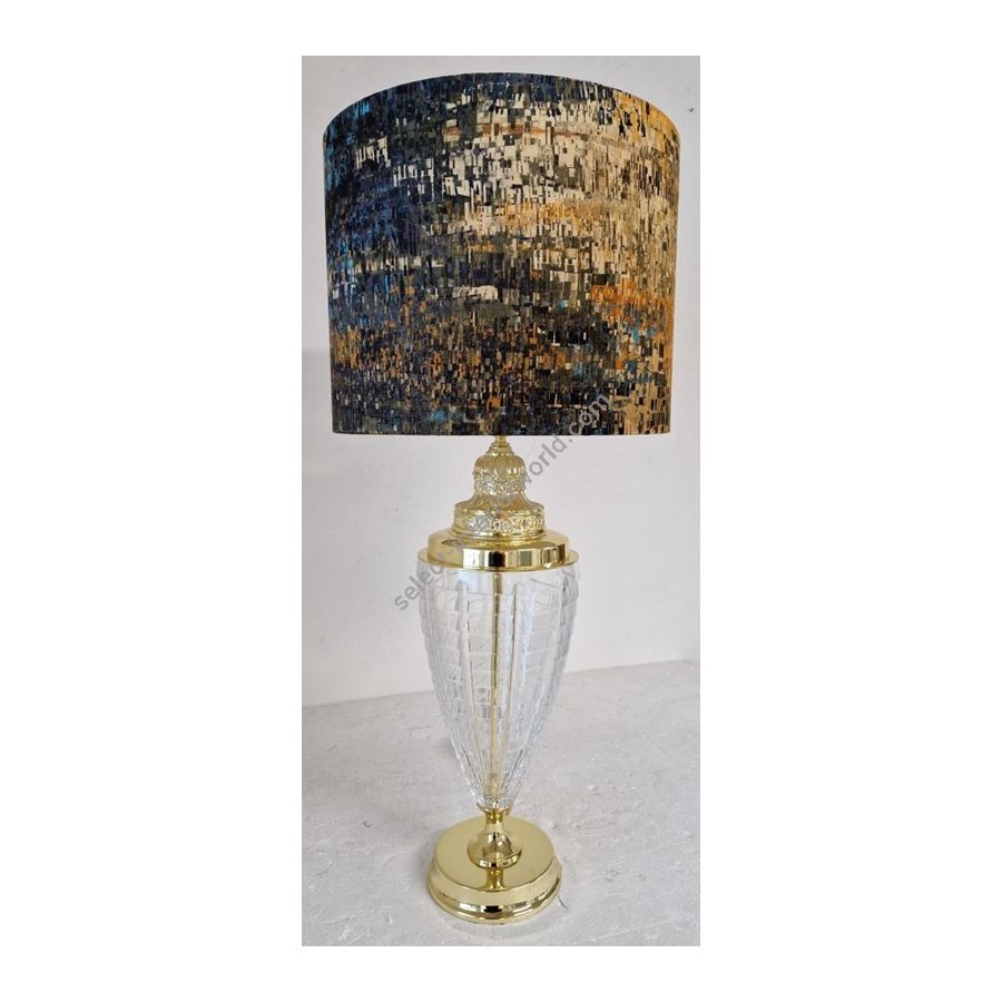 Table lamp in transparent Florentine crystal with a wonderful lampshade with shades that go from blue to yellow, a light fixture that conveys a sense of warmth and welcome.