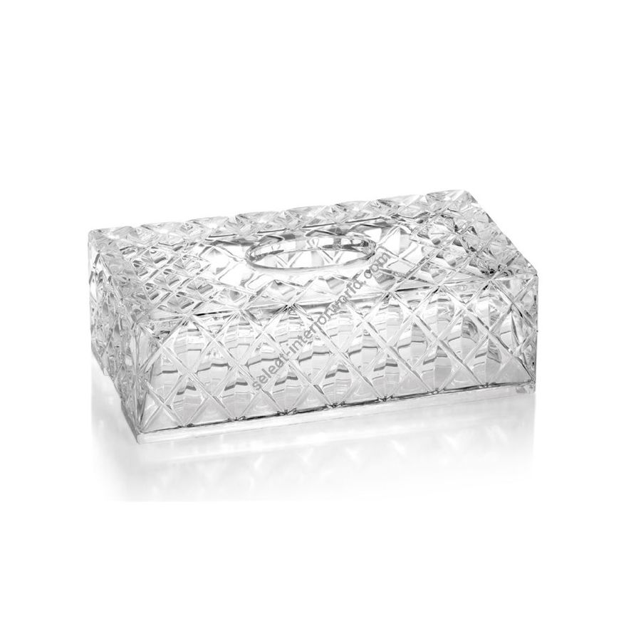 Italian hand-cut crystal set with three-dimensional rhombus pattern. Tissue Cover. Functional elements that create an extremely elegant, welcoming and high-value bathroom.