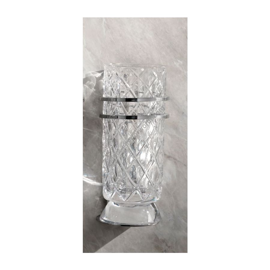 Italian hand-cut crystal set with three-dimensional rhombus pattern. Wall Toothbrush Holder. Functional elements that create an extremely elegant, welcoming and high-value bathroom.