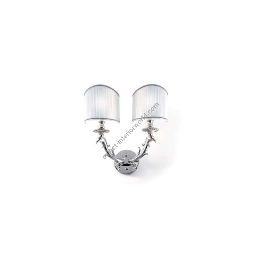 Wall lamp chrome with swan casting brass. Lighting item that diffuses the light with great effect in the surrounding environement creating a warm and welcoming atmosphere.