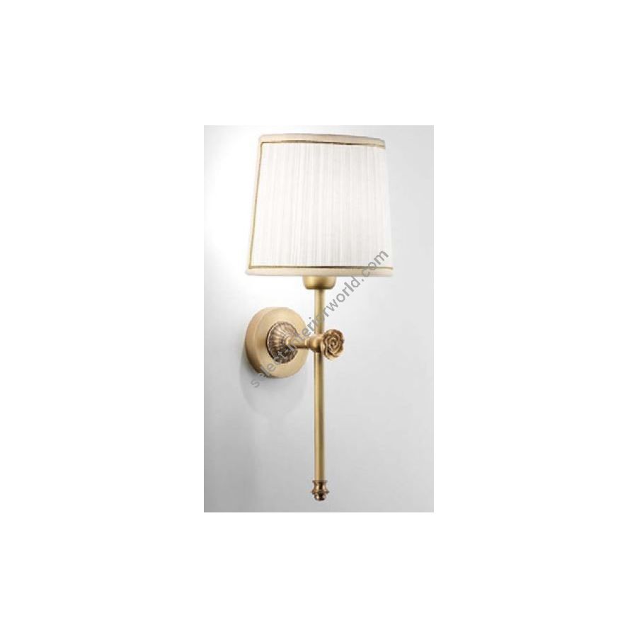 Wall lamp in brass and fabric lampshade. Lighting item that diffuses the light with great effect in the surrounding environement creating a warm and welcoming atmosphere.