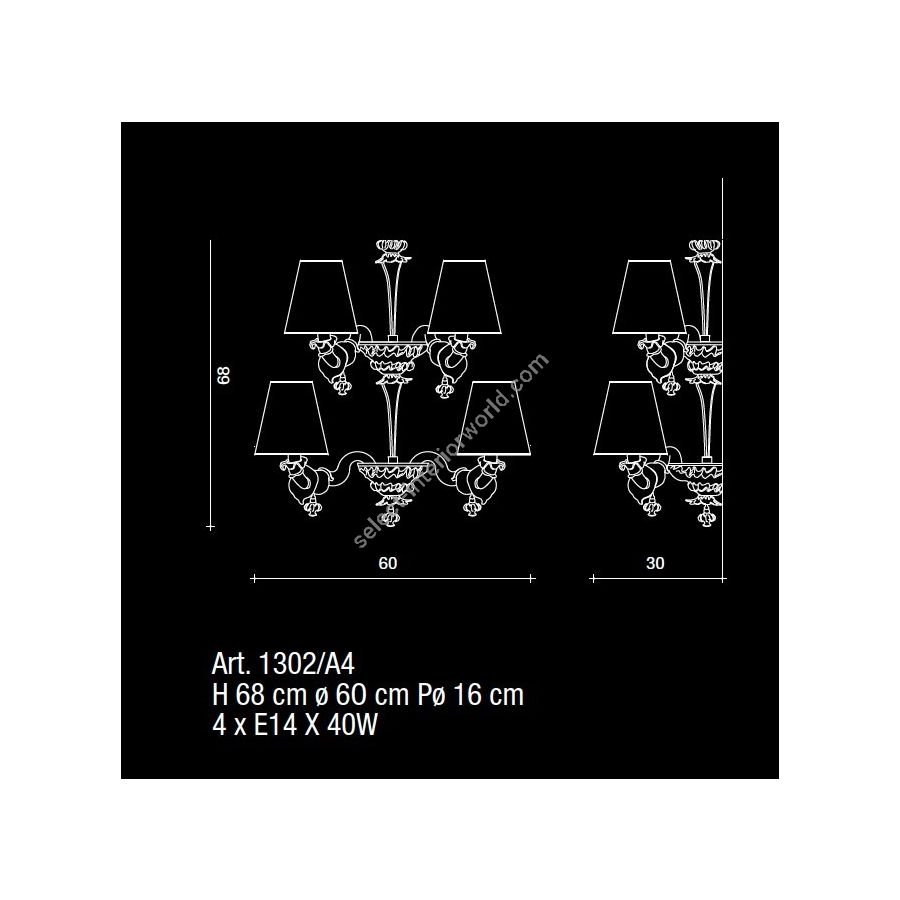 Bulbs: 4 x E14 x 40W| Dimensions (HxWxD): | cm: 68x60x30 / inch: 26.77"x23.62"x11.81" |