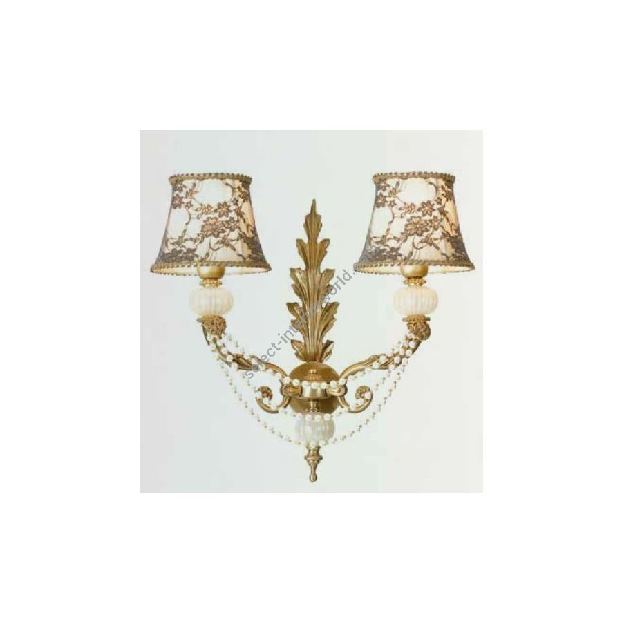 Wall lamp with 2 lights with Murano glass spheres and pearls, conical lampshades with lace. Lighting fixture that diffuses the light into the surrounding environment with great effect, creating a warm and welcoming atmosphere.