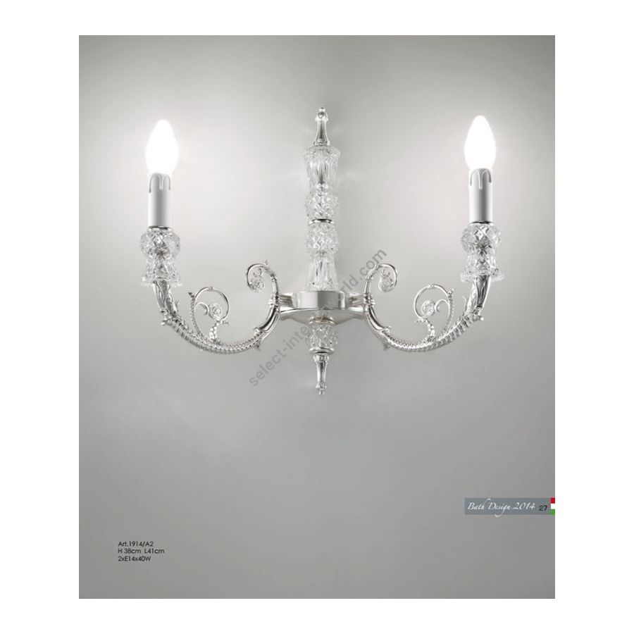 2 lights Wall lamp in cast brass and Florentine crystal. Lighting item that diffuses the light with great effect in the surrounding environement creating a warm and welcoming atmosphere.