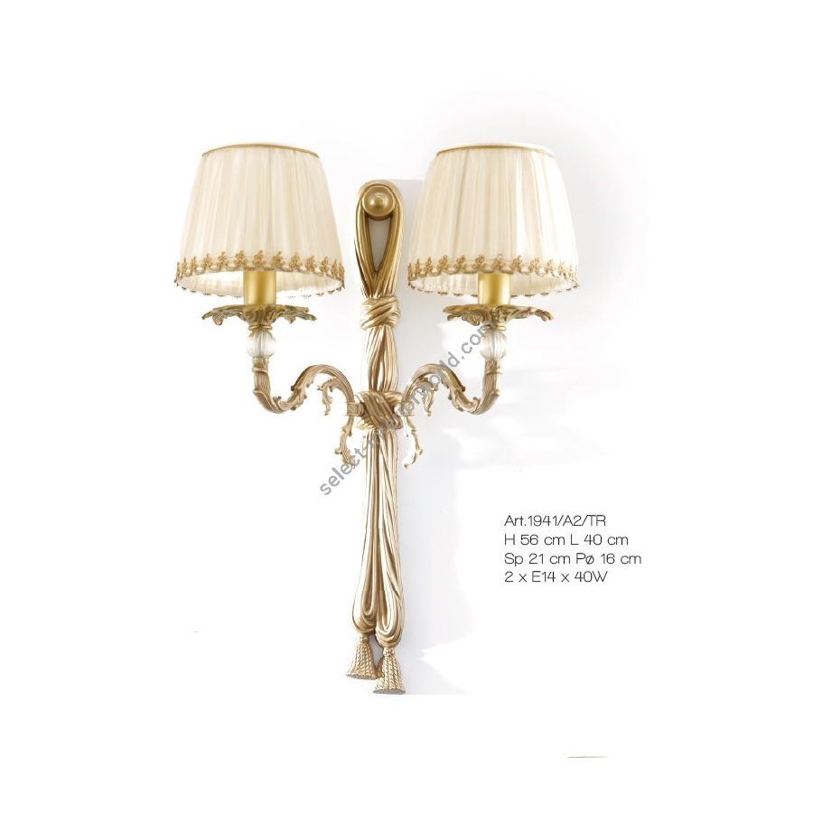2 lights cast brass Wall Lamp. Lighting item that diffuses the light with great effect in the surrounding environement creating a warm and welcoming atmosphere.