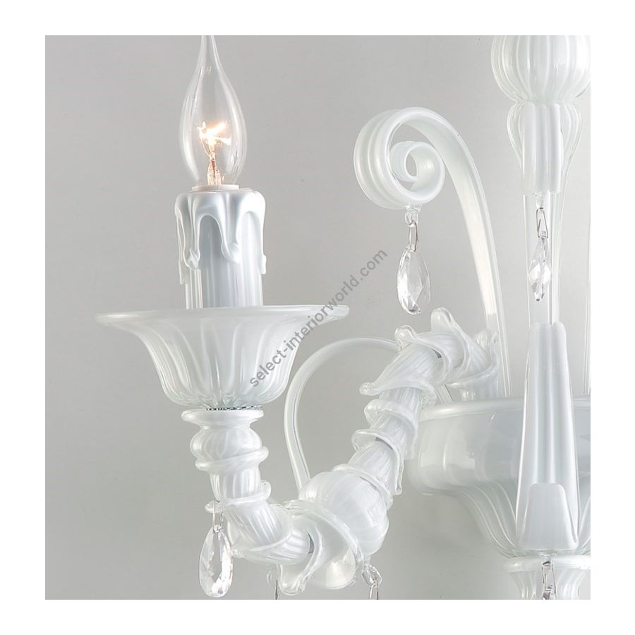 Murano Galss wall sconce White with crystal pendants. Lighting item that diffuses the light with great effect in the surrounding environement creating a warm and welcoming atmosphere.