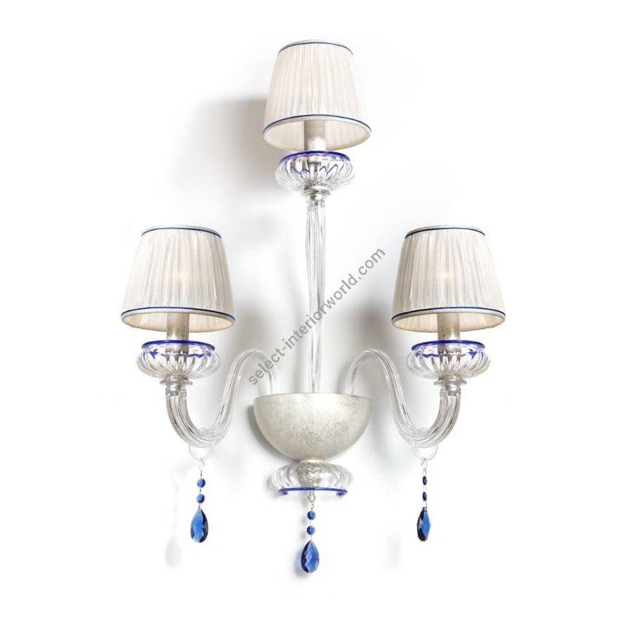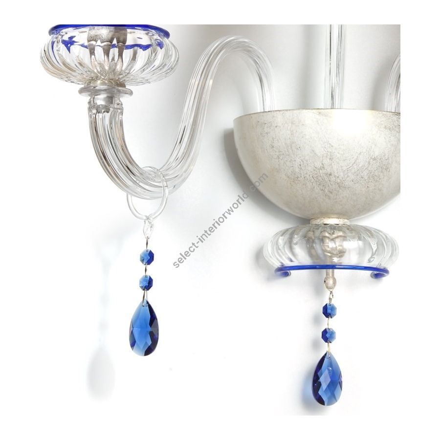 Murano Glass wall sconce transparent with Blue decoration and Swarovsky® Elements. Lighting item that diffuses the light with great effect in the surrounding environement creating a warm and welcoming atmosphere.