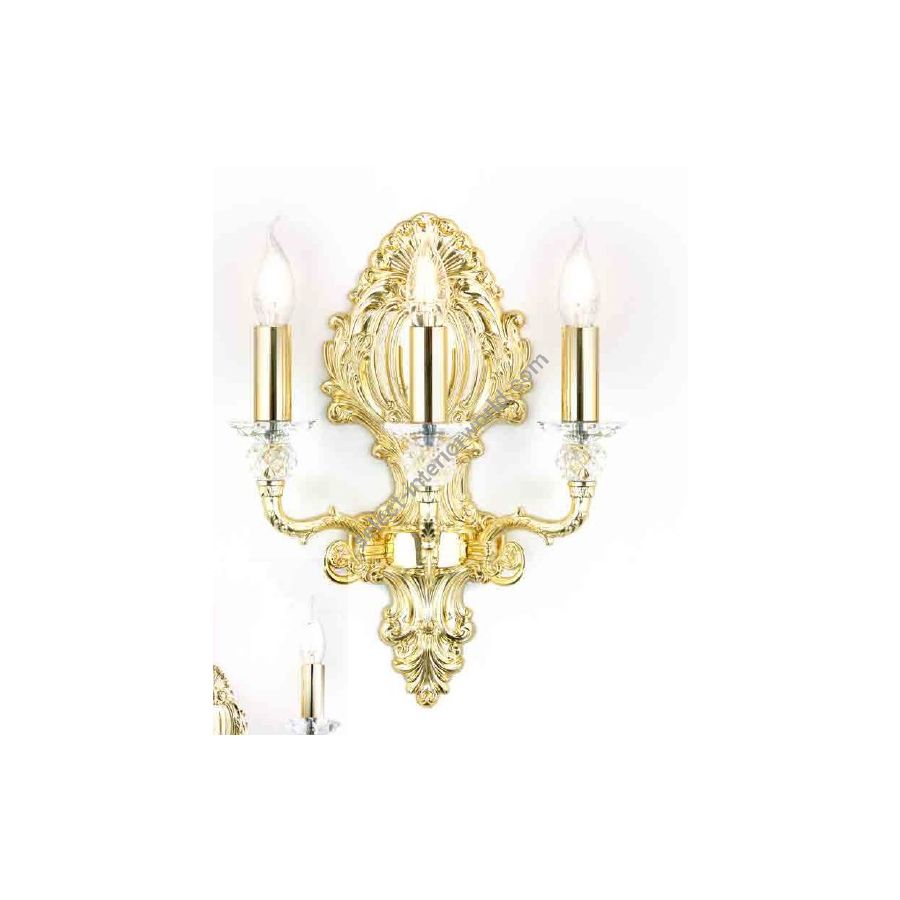 Brass wall sconce and Crystal. Lighting item that diffuses the light with great effect in the surrounding environement creating a warm and welcoming atmosphere.