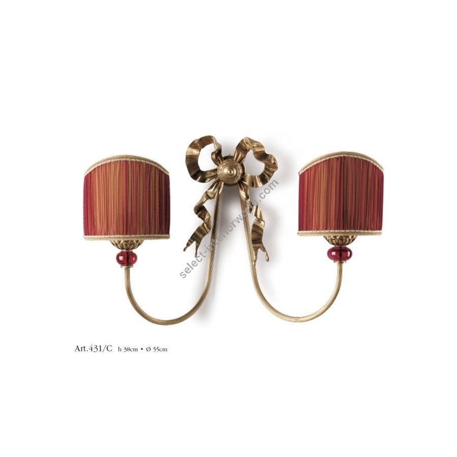 Wall lamp 2 lights with glass inserts and fabric lampshades. Lighting item that diffuses the light with great effect in the surrounding environement creating a warm and welcoming atmosphere.