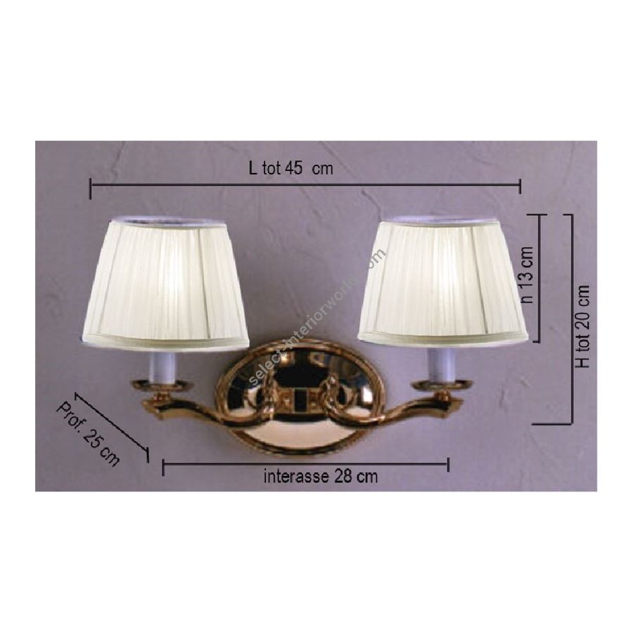 Wall lamp in solid brass with lampshades. Lighting item that diffuses the light with great effect in the surrounding environement creating a warm and welcoming atmosphere.