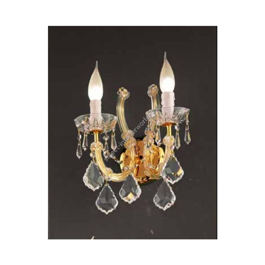 Mariateresa Wall Sconce with Gold plated metal frame covered by transparent glass arms and transparent Crystal pendants. Lighting item that diffuses the light with great effect in the surrounding environement creating a warm and welcoming atmosphere.