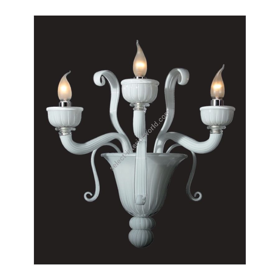 Wall lamp 3 lights in milky white color with transparent decoration. Lighting fixture that diffuses the light into the surrounding environment with great effect, creating a warm and welcoming atmosphere.