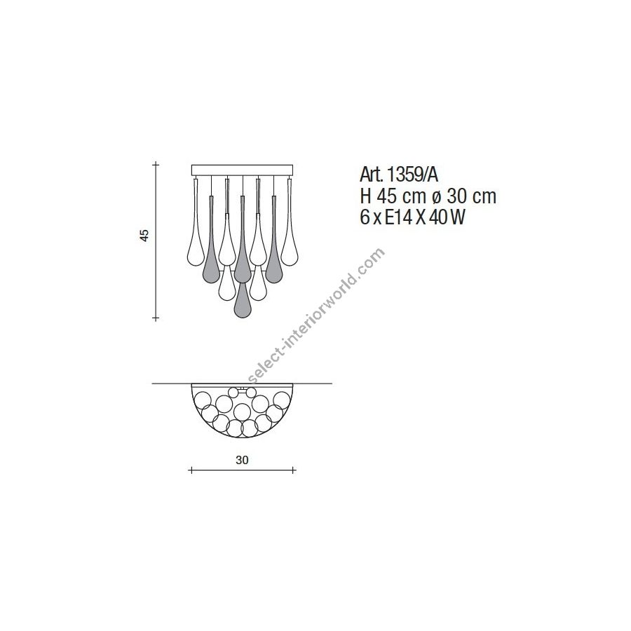 Wall sconces with ""Drop"" Murano glass elements. Lighting item that diffuses the light with great effect in the surrounding environement creating a warm and welcoming atmosphere.