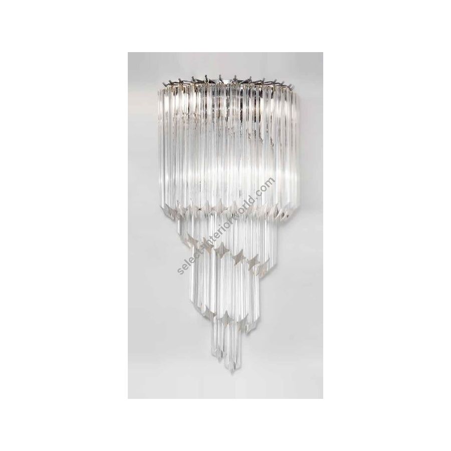 Wall sconce in transparent "Quadriedri" Murano glass. Lighting item that diffuses the light with great effect in the surrounding environement creating a warm and welcoming atmosphere.