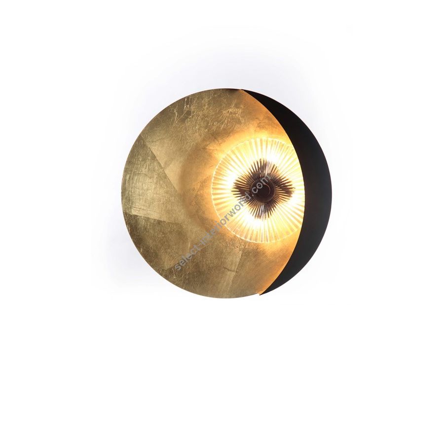Wall lamp, "Eye" collection, Ring in matt black metal with gold leaf lens and diffuser in Italian lead crystal entirely hand-milled. Lighting item that diffuses the light with great effect in the surrounding environement creating a warm and welcoming atmosphere.