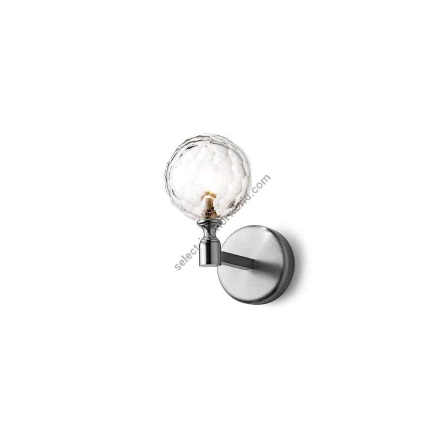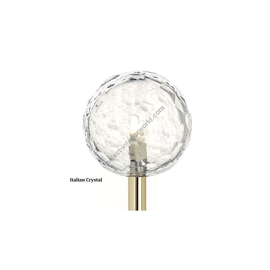 Wall lamp 1 lightswith hand-cut Italian crystal sphere. Lighting item that diffuses the light with great effect in the surrounding environement creating a warm and welcoming atmosphere.