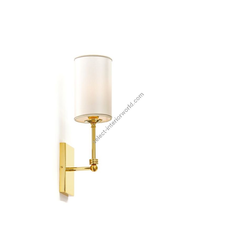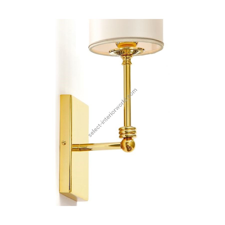 Contemporary polished gold brass wall lamp with shade. Lighting item that diffuses the light with great effect in the surrounding environement creating a warm and welcoming atmosphere.