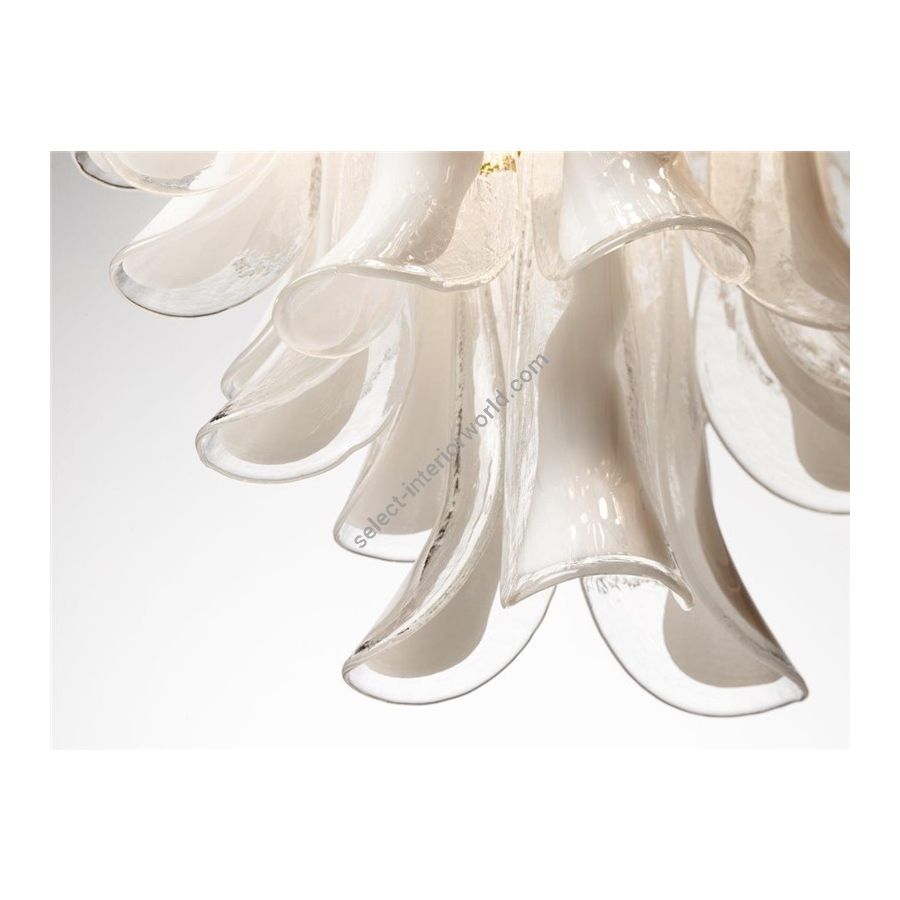 Wall sconce with Murano glass pendants in clear and white color. Lighting item that diffuses the light with great effect in the surrounding environement creating a warm and welcoming atmosphere.