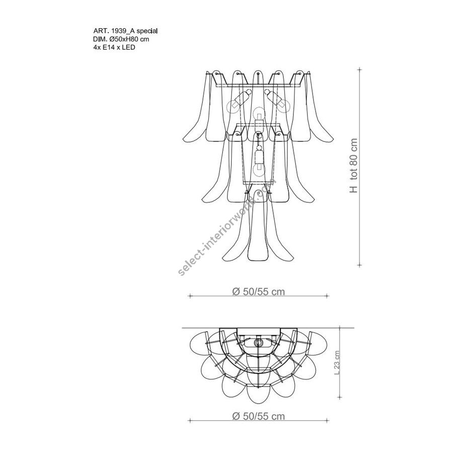 Bulbs: 4 x E14| Dimensions (HxWxD): | cm: 80x55x23 / inch: 31.5"x21.65"x9.06" |