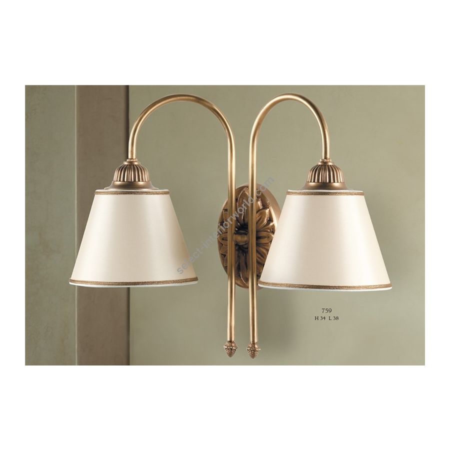 Wall lamp with 2 lights "pignette" with lampshade. Lighting fixture that diffuses the light into the surrounding environment with great effect, creating a warm and welcoming atmosphere.