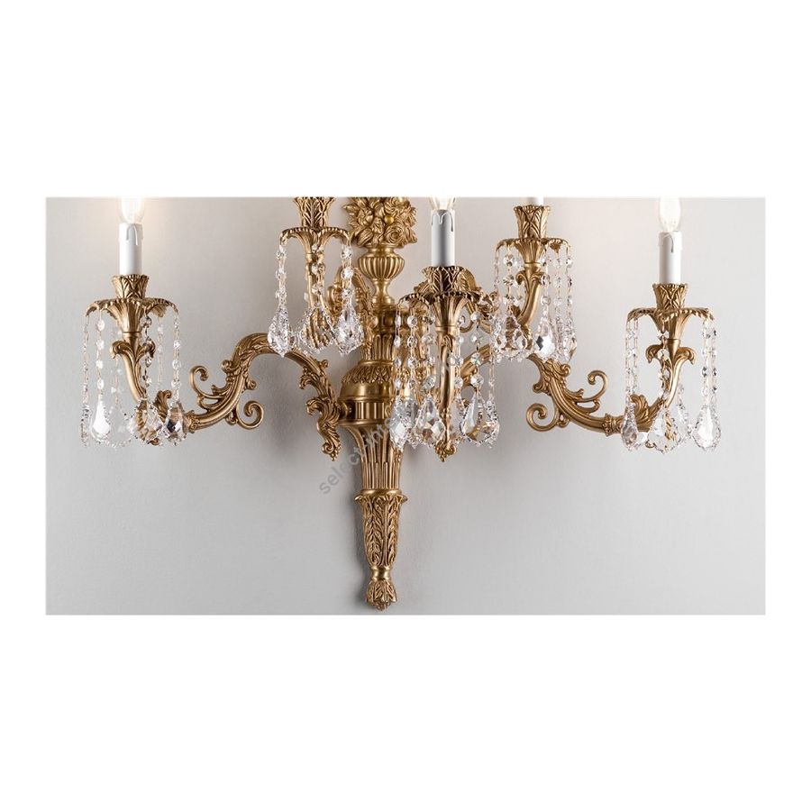 Cast brass wall sconce with Asfour® crystal pendants. Baroque style wall lamp rich in crystal and pendants.