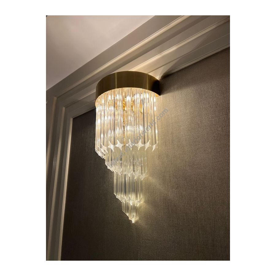 Wall sconce in transparent ""QUADRIEDRI"" Murano glass. Lighting item that diffuses the light with great effect in the surrounding environement creating a warm and welcoming atmosphere.