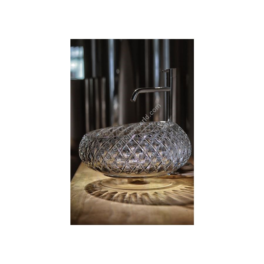 Italian hand-cut crystal set with three-dimensional rhombus pattern. Washbasin. (only Crystal metal part not included). Functional elements that create an extremely elegant, welcoming and high-value bathroom.