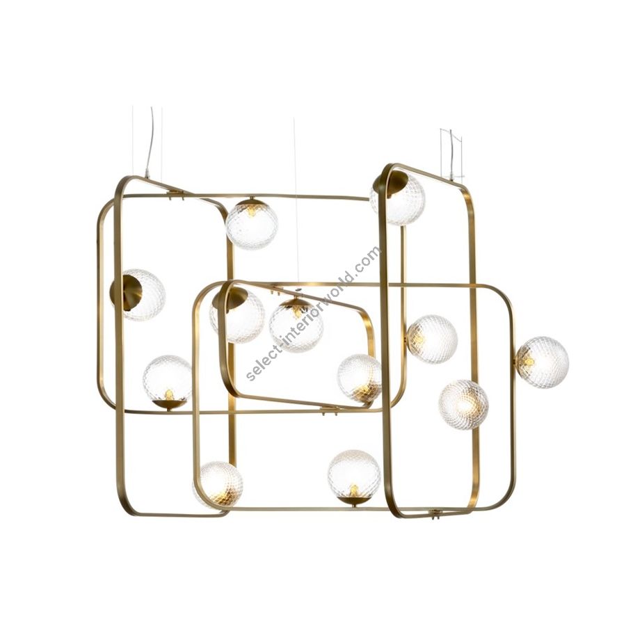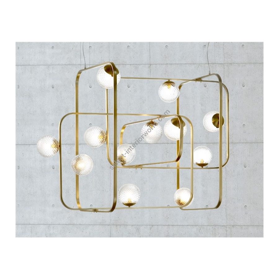 Chandelier with rectangular brass tube and Murano Glass ""a ballotton"" balls. Lighting item that diffuses the light with great effect in the surrounding environement creating a warm and welcoming atmosphere.